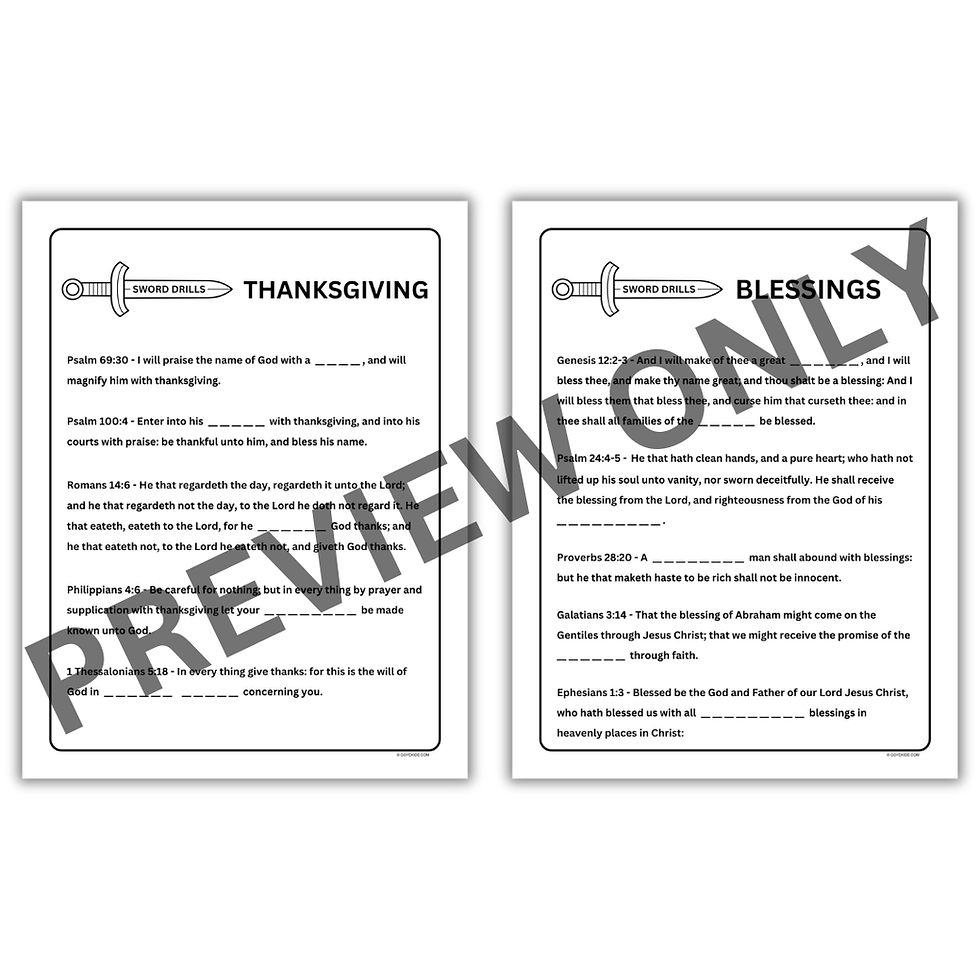Welcome to our growing collection of premium Bible resources! These resources are instant digital downloads, and each download allows you to make as many copies as needed for your local church, local organization, or home.
